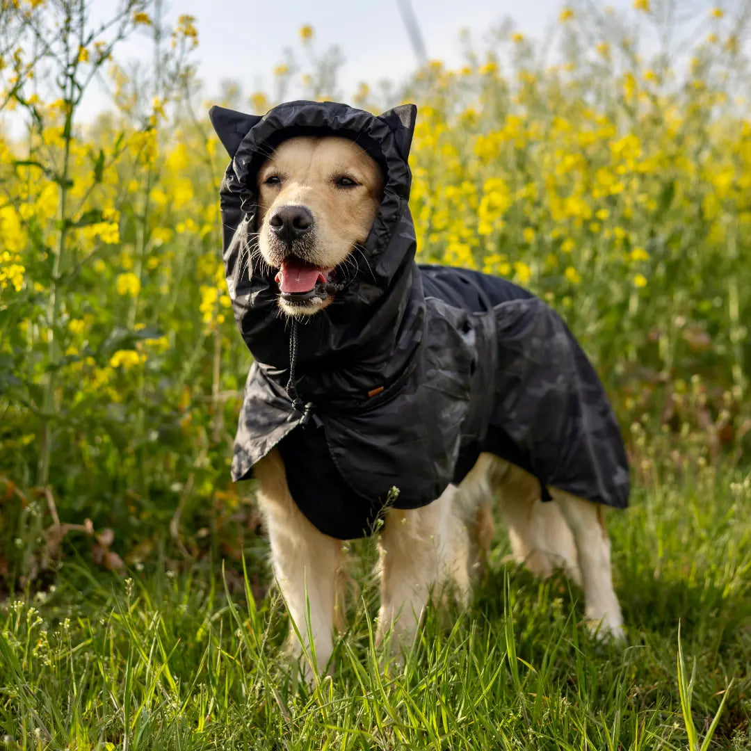 Dog Raincoat Ears - Black camo + ears