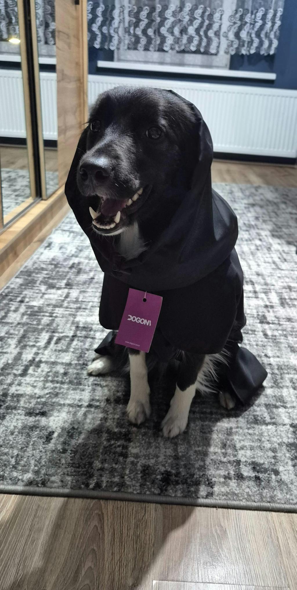 | Podszewka | Podszewka z czarnej siatki w płaszczu przeciwdeszczowym dla psa gwarantuje cyrkulację powietrza i zapobiega przegrzewaniu się psa podczas aktywności. |