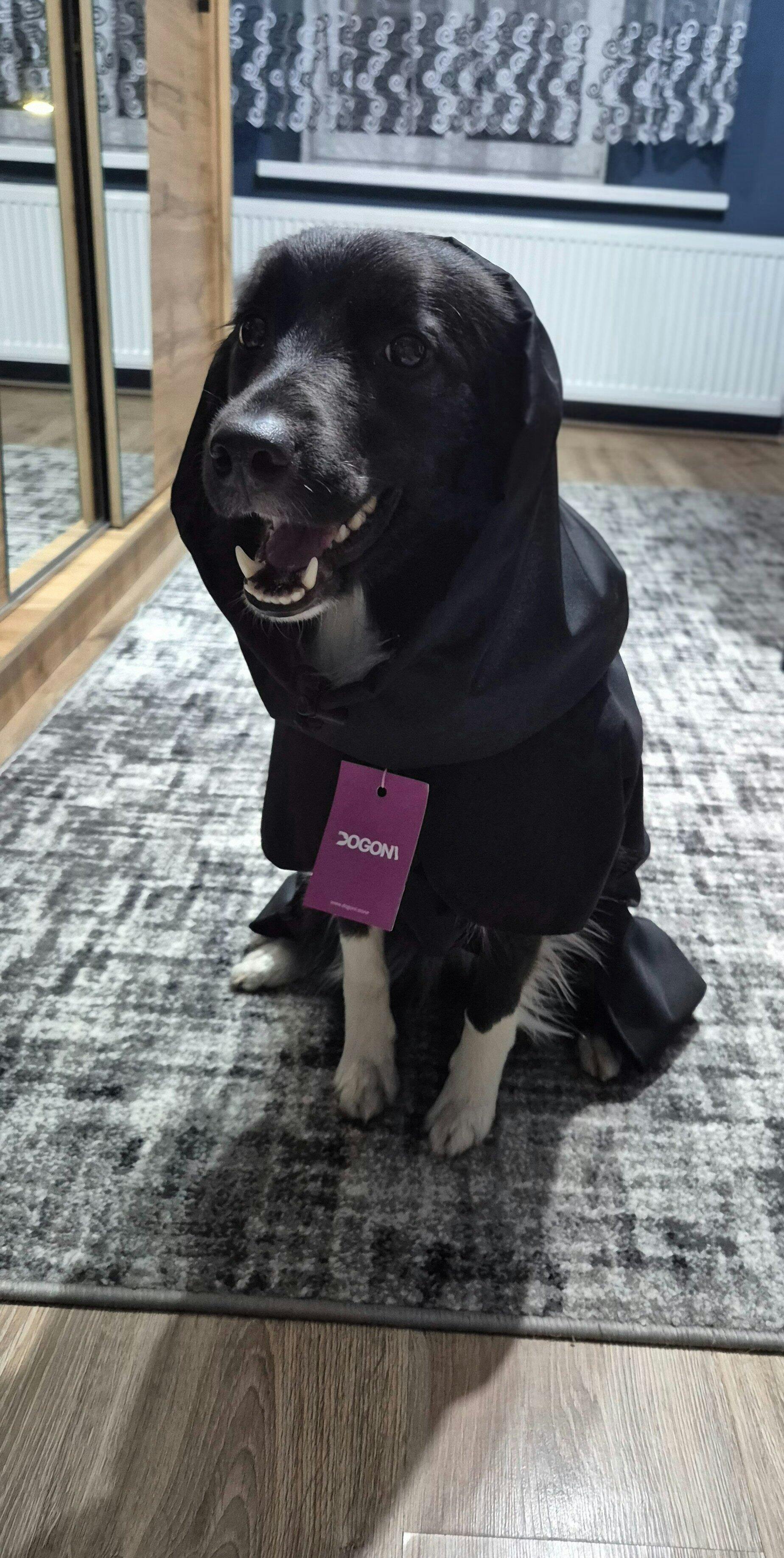 Rozwiązanie dzięki któremu można dostosować płaszcz do wymiarów pupila, a barki są osłonięte prze deszczem i wiatrem.