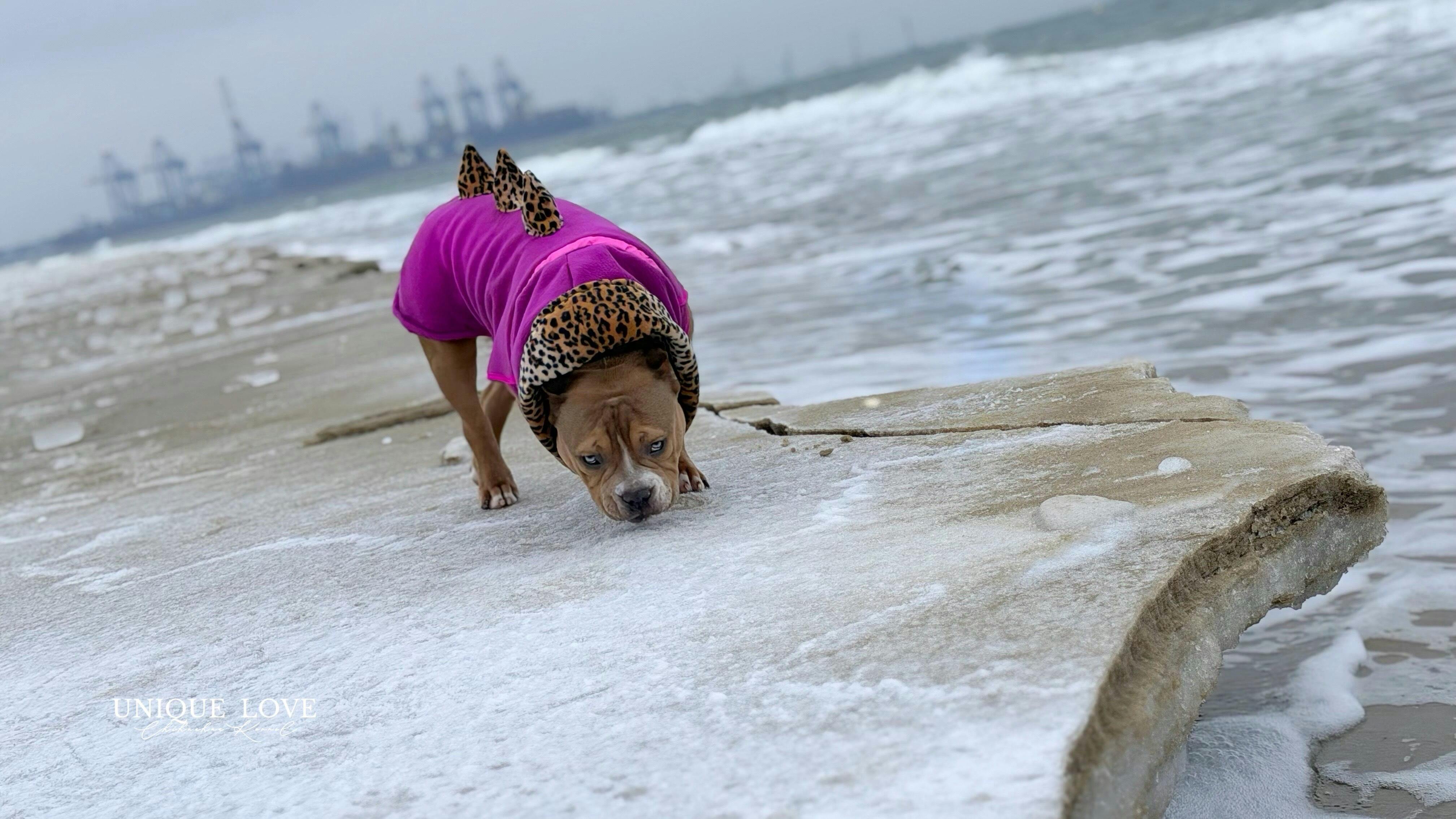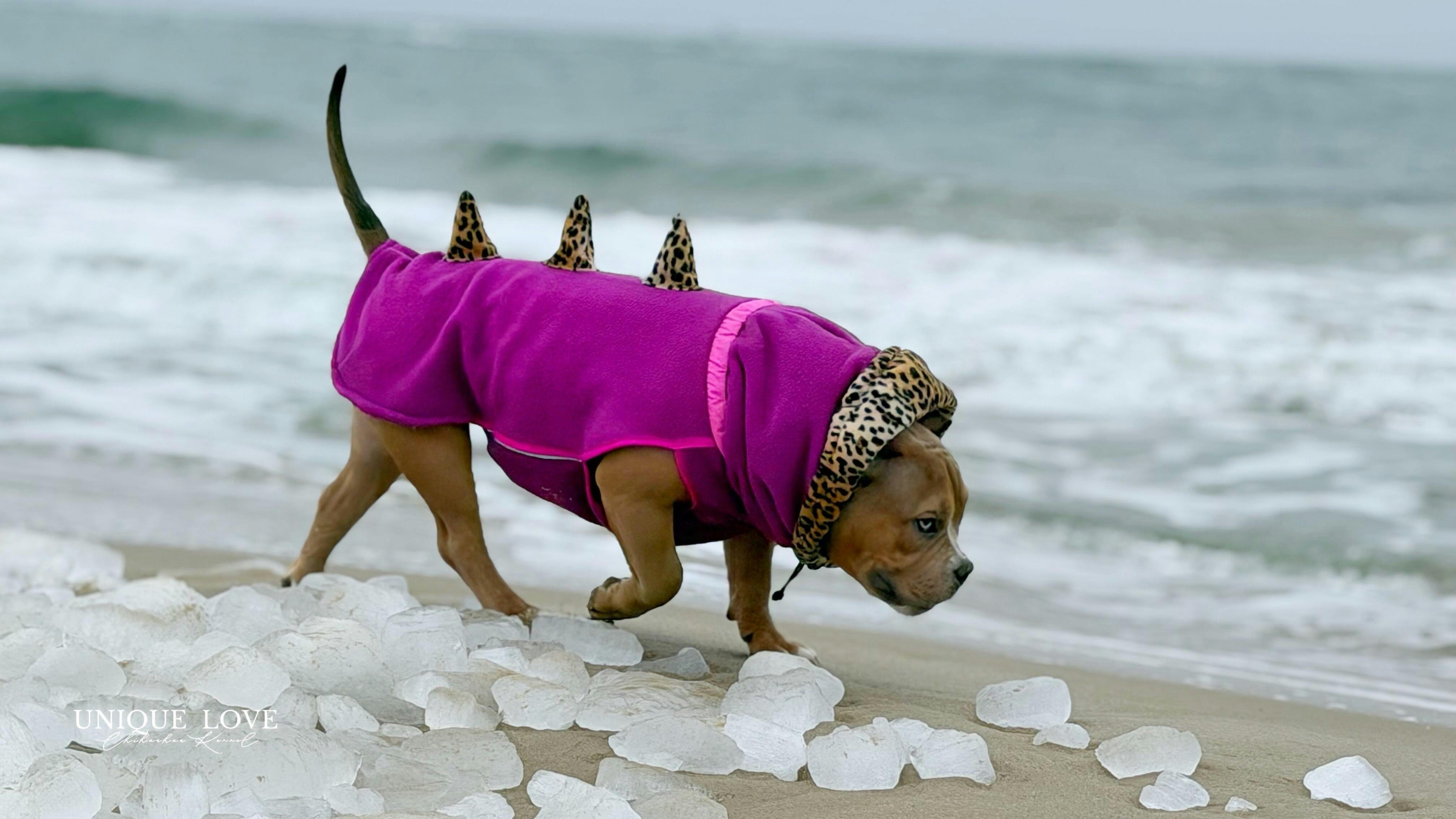 Rozwiązanie dzięki któremu bluza ochroni przed chłodem uda psa, a po zmroku pies jest dobrze widoczny.
